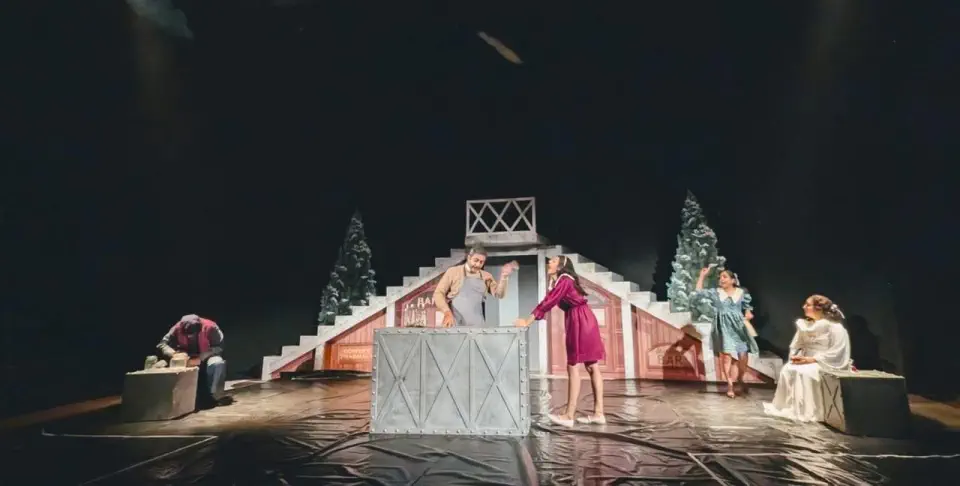 | Special Requirements | Rigging points to hang light bulbs across the stage Space to create a centre door upstage 6 crew to assist with stage setup Ironing of costumes |